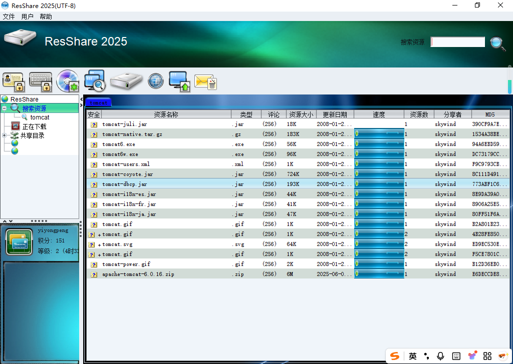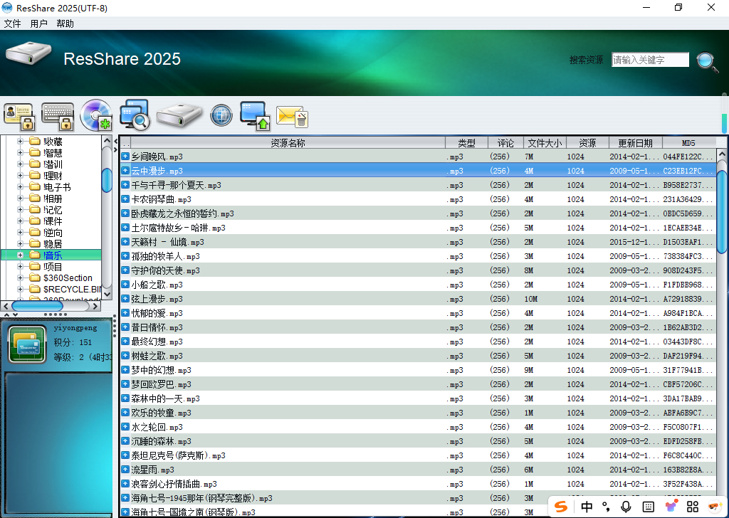 在主界面的右上角的搜索输入框中输入资源的关键字,然后按下回车键开始请求搜索任务,稍等片刻即可看到网络中搜索到的资源列表。