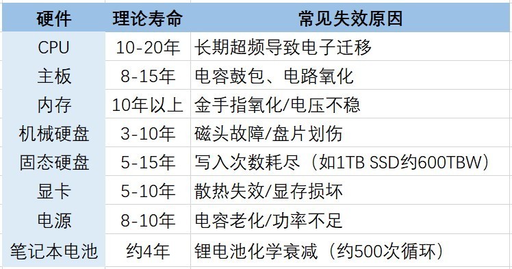然而,并非所有部件都如此“长寿”。机械硬盘的旋转盘片和磁头就要“娇贵”得多,一般3-8年就可能因震动或磨损出现故障。相比之下,固态硬盘(SSD)虽无活动部件,但其存储单元在经历约600TB的数据写入后(以1TB容量为例),便会逐渐失效。