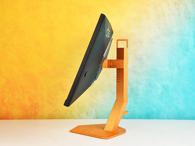 显示器同样支持升降调节,在支架上依旧刻有不同的高度数据,方便玩家随时还原或者参考学习职业哥的数据。