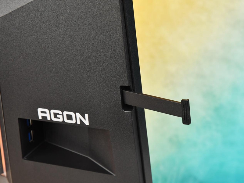 显示器背部整体的外观造型依然是延续了AG系列的特色,不论是不规则的多边形灯带还是棱角分明的线条设计无一不彰显产品在设计时的独具匠心。