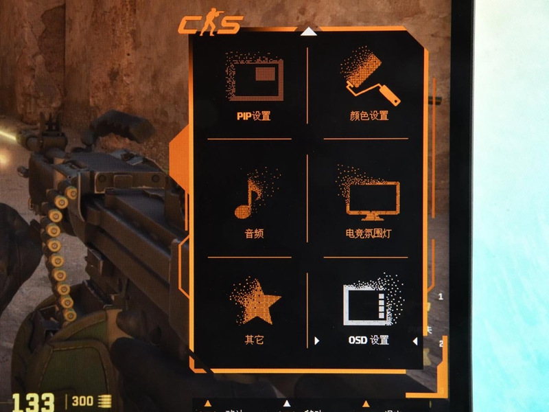 2、CS专属酷炫外观,丰富游戏元素展示;这款显示器的外观设计专为CS游戏玩家考虑,丰富的游戏内元素布满显示器及配件上,甚至显示器在开机时的动画上亦有联名logo,让玩家能够迅速融入紧张刺激的对局氛围。