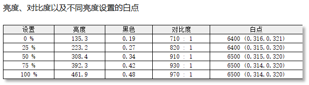 色温一致性方面,这款显示器的白点色温稳定在6400K以上,色温基本保持恒定,整体色温贴近标准色温,屏幕最大亮度为461.9尼特。