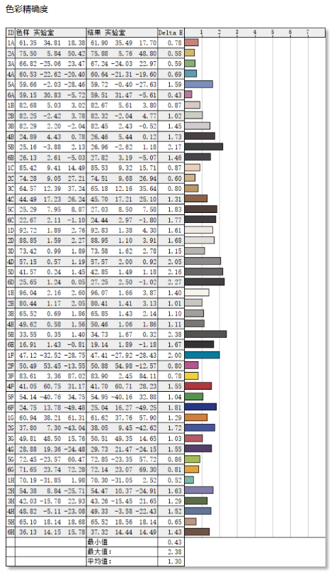 在色彩准确度的测试中,AGON CS24A显示器结果为平均ΔE值为1.3,最大ΔE为2.38。一般来说平均ΔE<2,人眼就基本上分辨不出色彩的差异,AGON CS24A显示器的色准完全可以媲美一些专业显示器。