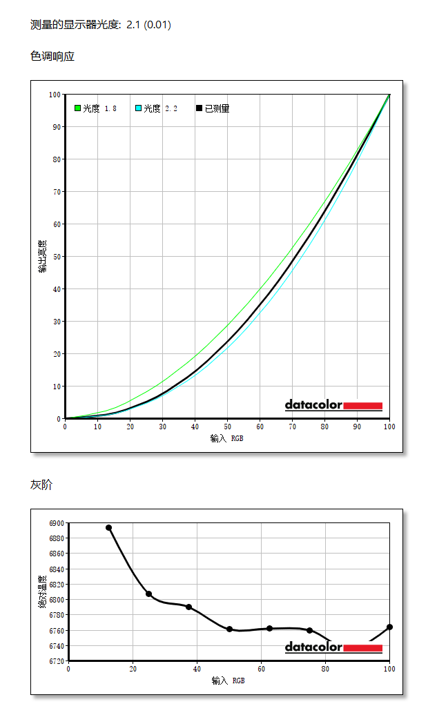 Lecoo K2739GQL电竞显示器的色调响应测试表现同样可圈可点,实测光度2.1,与标准的2.2光度差距很小。其色彩亮度映射准确度相当可以,使用中不用担心色彩亮度失真、偏色、亮度不均匀等问题。灰阶方面,整体都在6500K以上,画面偏冷一些。