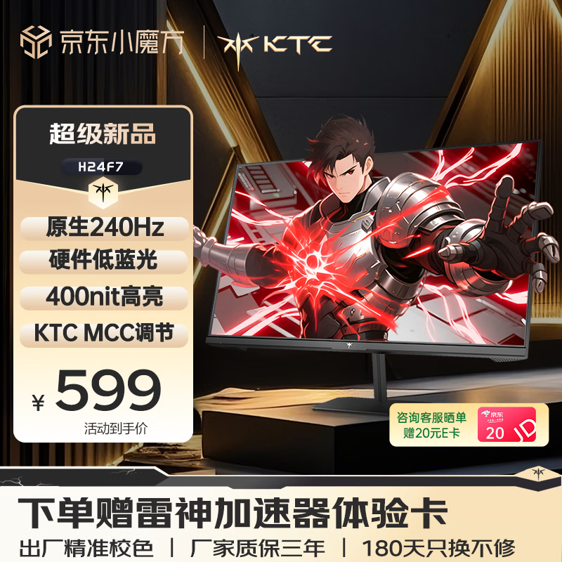 KTC H24F7显示器新品预售价仅599元,购买后晒单还可返20元E卡,实付到手价低至579元,相比原价619元更加超值,是追求高刷与画质玩家的理想之选。