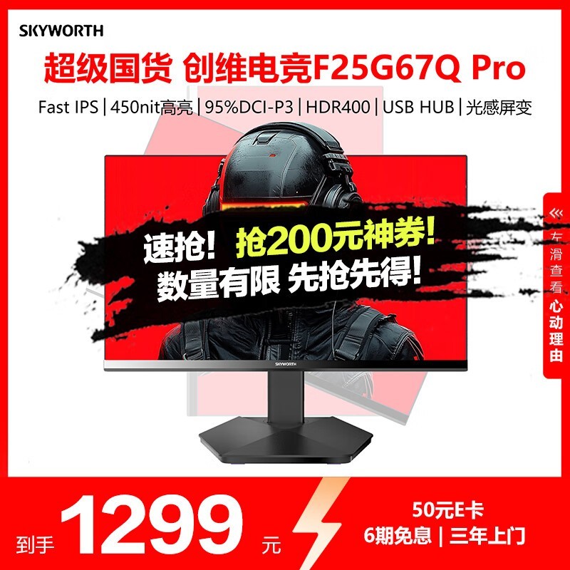 创维 F25G67Q Pro 24.5英寸2K电竞显示器320Hz HDR400 1ms FastIPS光感屏变 硬件低蓝光 HUB集成旋转升降