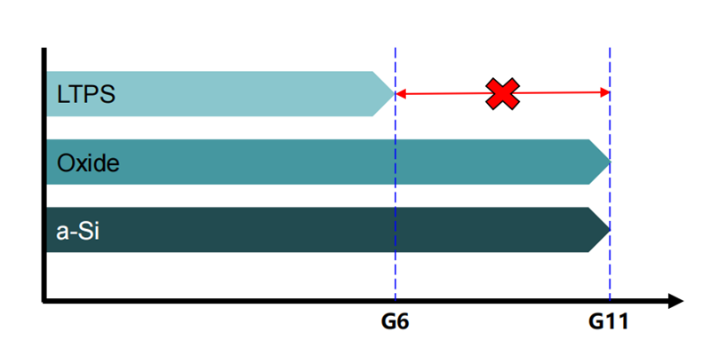 的确低温多晶硅理论上更适合,但其因为漏电流较高,低刷新率情况下不太稳定,并且功耗也会较高。而且LTPS的大尺寸产品成本极高,目前一般只应用于小尺寸产品中,且制造工艺相对IGZO更复杂,需要在生产过程中严格控制温度。所以综合性价比以及性能来看的话,IGZO氧化物技术显然更值得被选择。