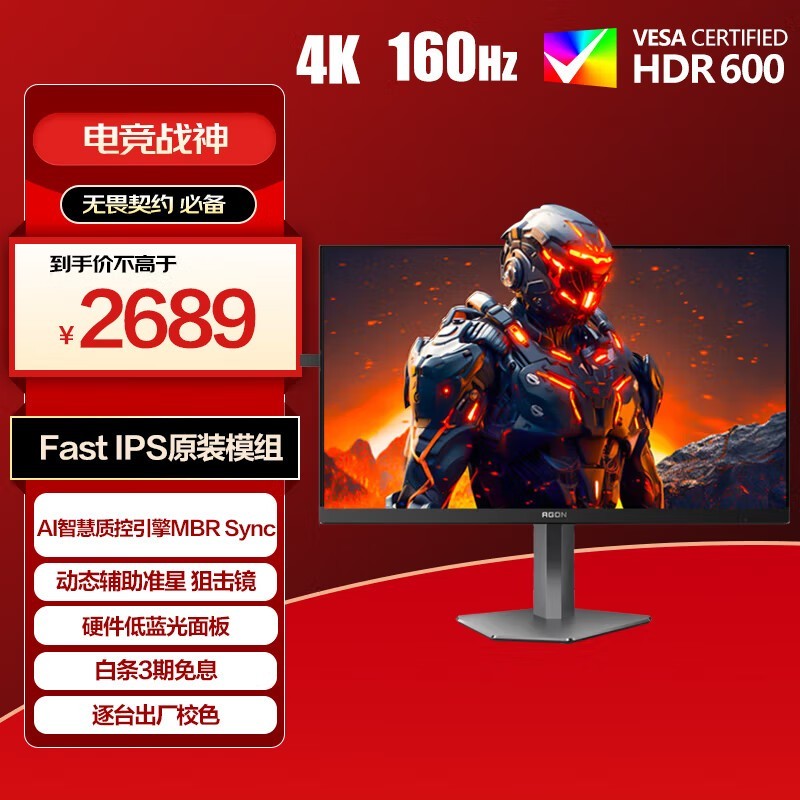 AOC AG276UX 游戏电竞显示器 27英寸 4K 160Hz FastIPS原装模组 HDR600 1ms MBRSync 硬件低蓝光 爱攻