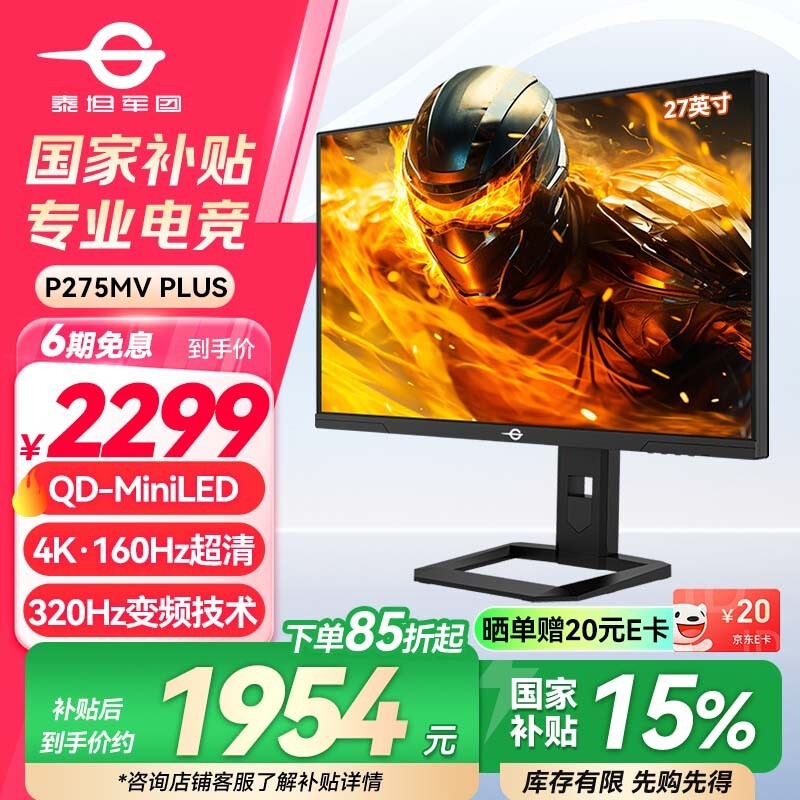 泰坦军团 P275MV PLUS 27英寸电竞显示器P275MV PLUS正在京东促销。泰坦军团 P275MV PLUS显示器原价2179.40元,现活动售价2999元,参与每满2989元减700元优惠活动,PLUS会员可再立减14.99元,还有国补8.5折,下单1件晒单返20元E卡,最终到手价仅1921.41元。