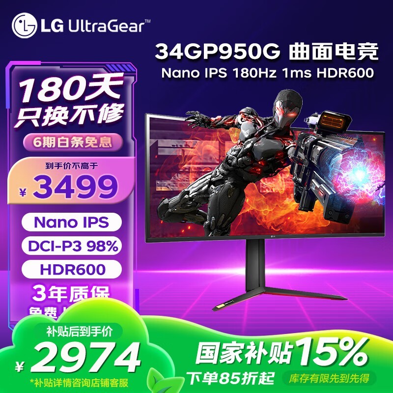 LG 34GP950G 34英寸 Nano IPS 超2K 180Hz 曲面电竞显示器 1ms响应 HDR600 21:9超宽带鱼屏 34GP950G 34英寸 180Hz 曲面屏