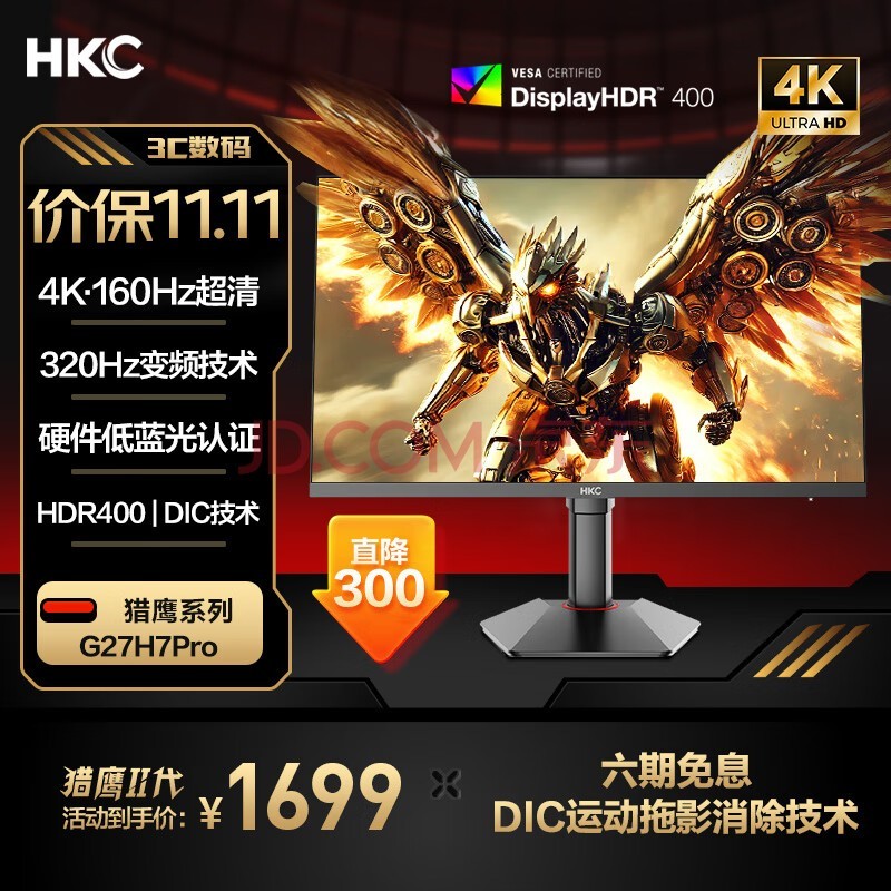 HKC 27英寸4K超清160Hz双模320Hz FastIPS屏 HDR400硬件低蓝光旋转升降电竞显示器猎鹰二代 G27H7Pro