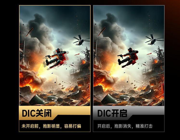 此外HKC G27H7Pro还支持自研DIC技术,这是一项可以实现动态模糊消除的技术,可以大幅减少拖影。这项技术在一定程度上可以提高玩家的命中率,特别是在游戏的关键节点,它或许会成为你赢得比赛的关键。