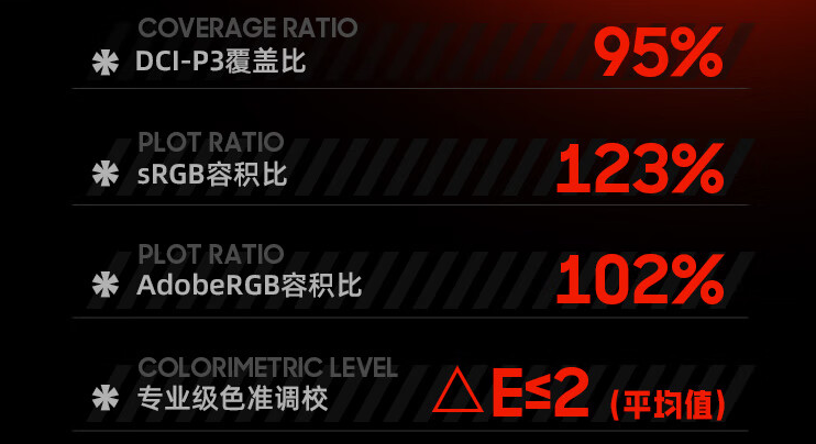同时它还拥有Display HDR400认证,开启HDR之后,在支持HDR的游戏中,能够提供明暗对比更显著、色彩层面更好的表现。色域方面也没有落下,支持95% DCI-P3广色域、123% sRGB容积比和102% Adobe RGB容积比,色彩更加鲜艳。色准表现也给力,支持色域缩限,平均色准≤2,表现超过预期。