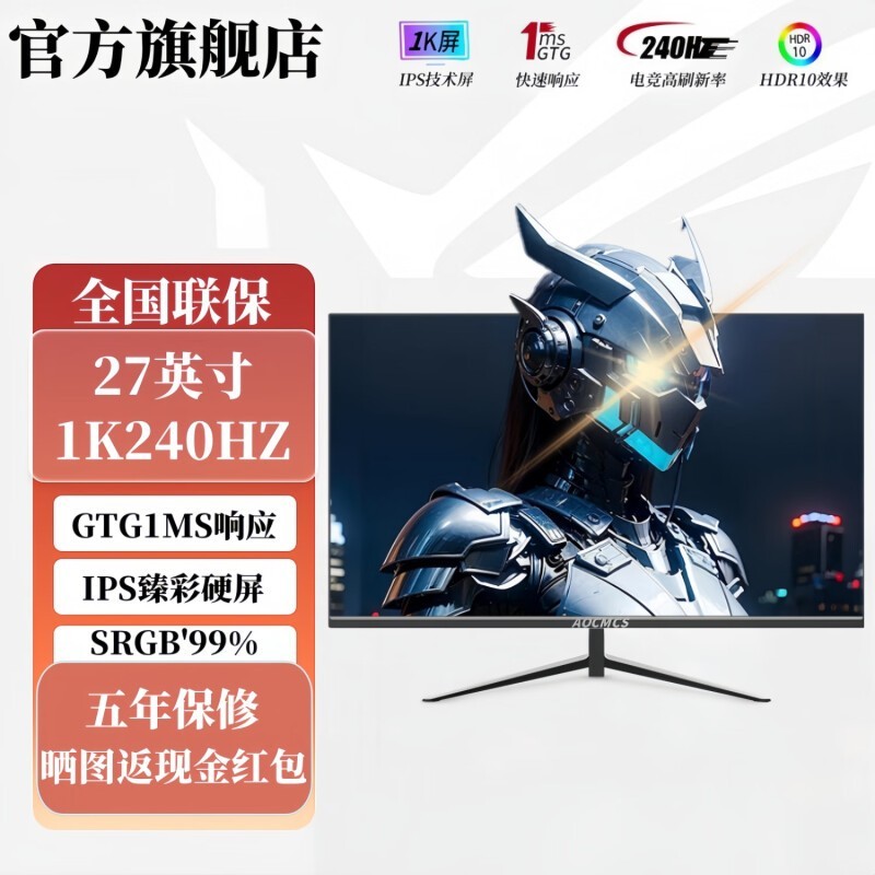 AOC MCS显示器27英寸 2K 240'Hz电脑显示屏1K IPS 165'hz直播竖屏超薄办公设计高清小钢炮电竞游戏扩展屏 27英寸【1K240Hz】直面武士黑 电竞高刷