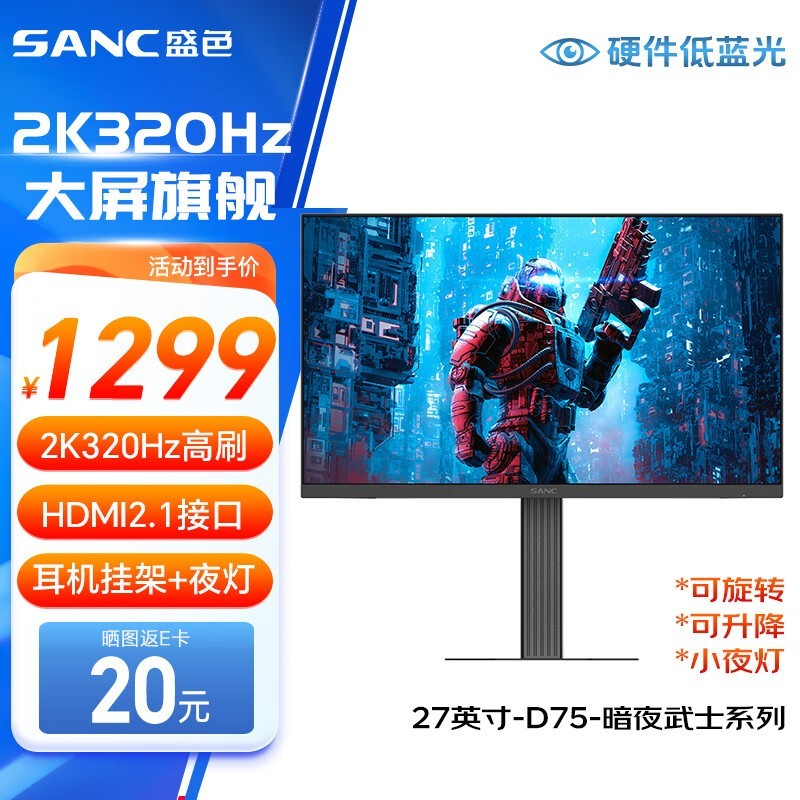 盛色 黑武士 D75 27英寸2K300Hz超频320Hz FastIPS 硬件低蓝光IGZO技术 1ms旋转升降 电竞显示器屏幕