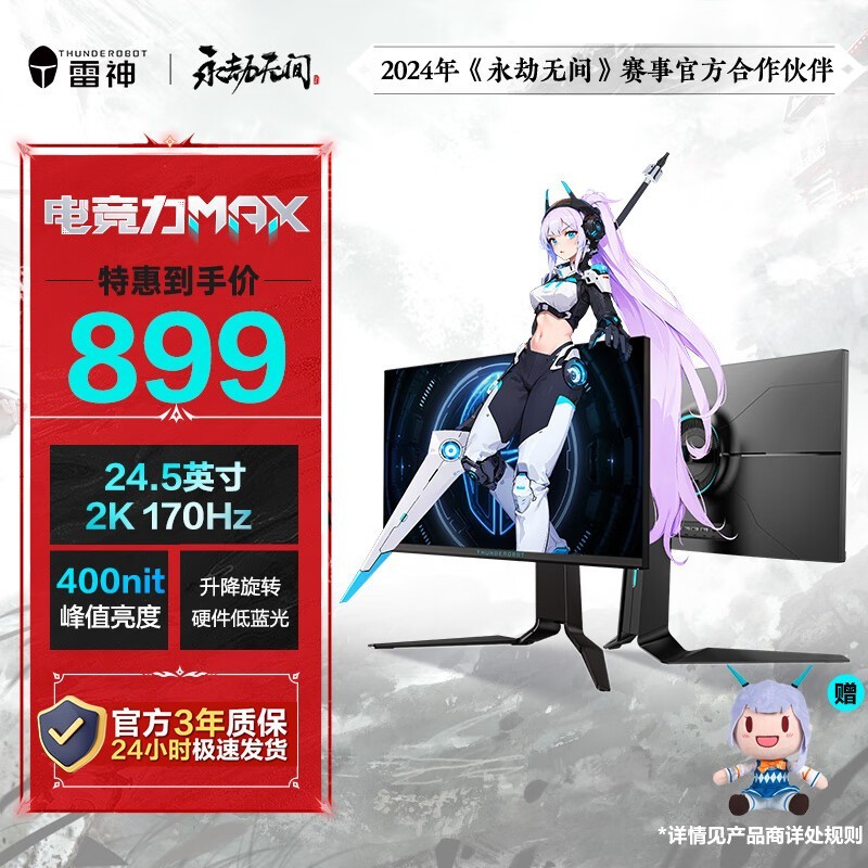 雷神 LQ25F165L银翼24.5英寸快速液晶电脑显示器,采用2K分辨率和170Hz高刷新率,搭载FAST IPS技术和1ms GTG超高速响应速度。经过硬件级防蓝光处理,有效过滤高能短波蓝光,并搭配DC不闪屏技术。此外,雷神 LQ25F165L还支持HDR技术,拥有99%sRGB色域覆盖和NIVIDIA G-SYNC兼容性测试以及Free-SYNC技术认证。同时还具备多种接口,如HDMI2.0*2、DP1.4*2、Audio out等。优惠价格879元,原价999元,现在购买可享受满1399减500的优惠活动,非常划算。喜欢的朋友不要错过!
