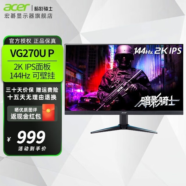 宏碁 VG270U Pbmiipx 2K高分144Hz 27英寸 IPS电竞显示器 VG270U P