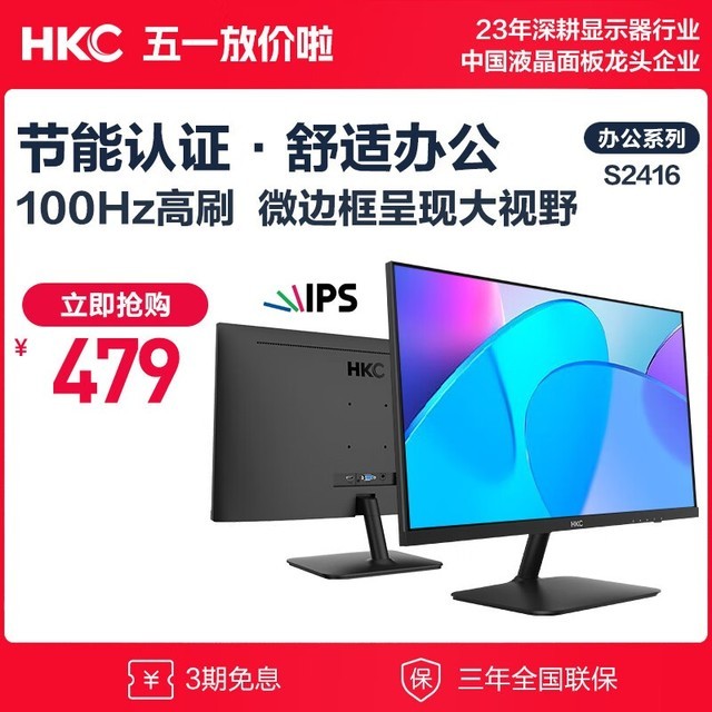 这款HKC S2416 23.8英寸IPS显示器现在正在参加每619元减去150元的优惠活动。原价是629元,现在只需要479元。如果你对这个产品感兴趣,不要错过这个促销机会。