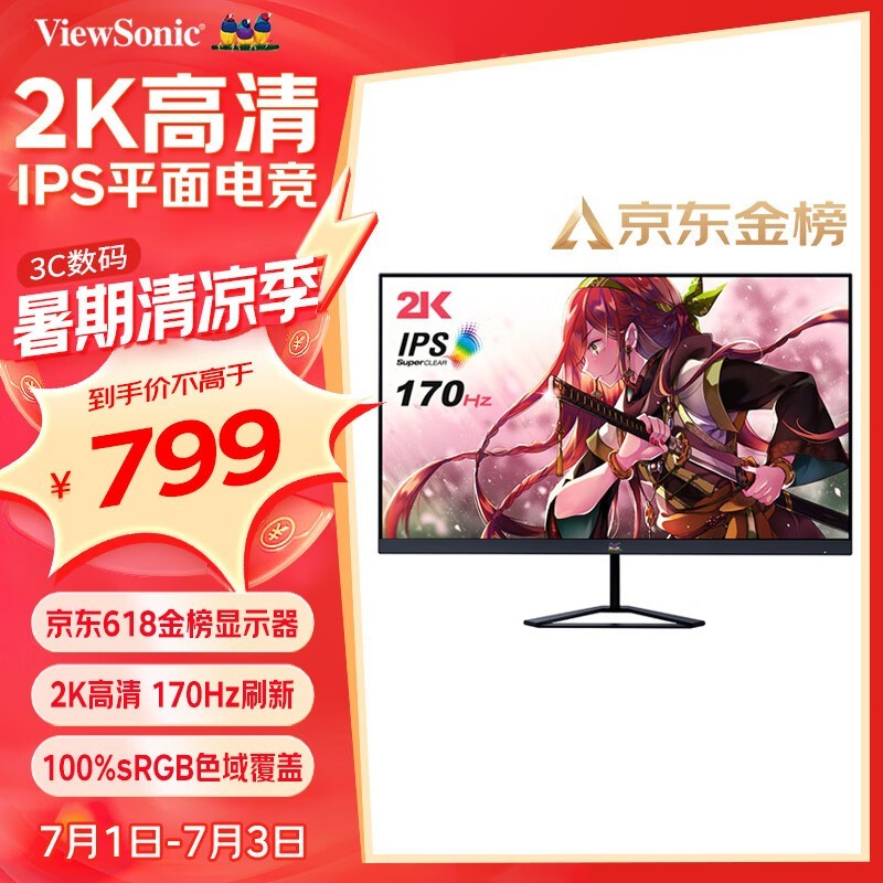 优派 VX2758-2K-PRO 27英寸 2K高清 170Hz IPS 电竞显示器 1ms低蓝光电脑屏幕HDR 满血小金刚 外接显示屏