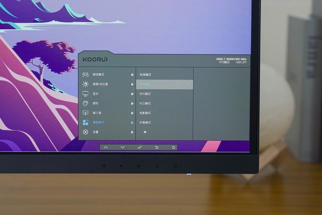 在情景模式选项中,科睿P6显示器除了常见的标准、电影等模式以外,还拥有FPS、RPG、RCG三种游戏模式,可以在工作之余玩不同类型游戏时都能选择到最适合的画质。