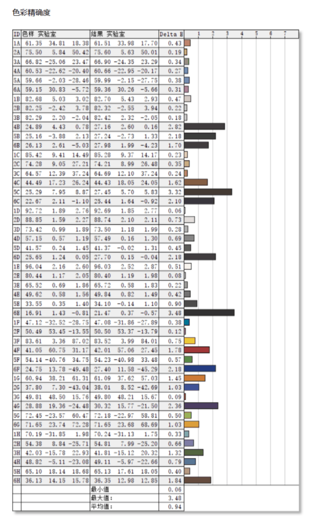 色彩精确度方面,科睿P6测试的48种颜色平均△E值为0.94,当△E值<2时人眼基本上分辨不出色彩的差异,由此可见,这款显示器的色彩还原能力非常不错,完全可以满足一些专业设计工作的使用需求。
