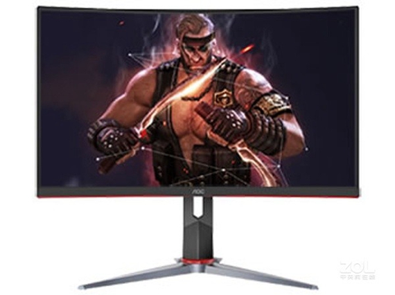 AOC C27G2X显示器采用了时下流行的3面窄边框+曲面的设计,底部边框的正中为一个AOC的LOGO。面板方面,这款AOC 27G2X显示器采用了1500R的1080p分辨率的VA面板,由三星显示提供,刷新率为60Hz,峰值亮度为300cd/m2,色数为1670万,也就是8bit色深。