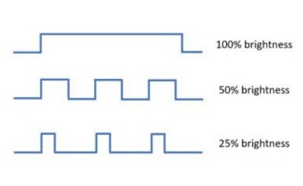 看起来好像比较复杂,不过只要了解一下,PWM的全称为Pulse Width Modulation,意为脉冲宽度调制,从这个命名上就很好理解,它是通过控制光源开关的时间来调节光源亮度的。