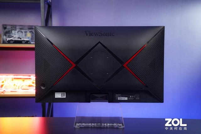 当你来到显示器的背面时,两个V形的红色装饰对称地分布在黑色的背面。经典的红黑配色设计更容易激发玩家对游戏竞争的热情。中心设置标准75×75mm壁挂孔,可挂在墙上或连接显示支架,使用场景更加灵活。