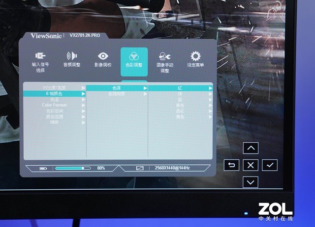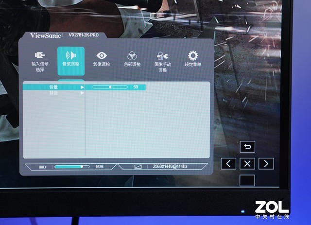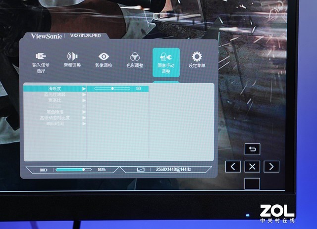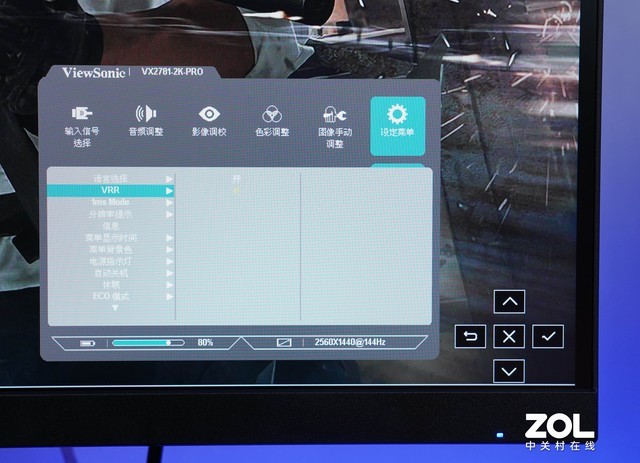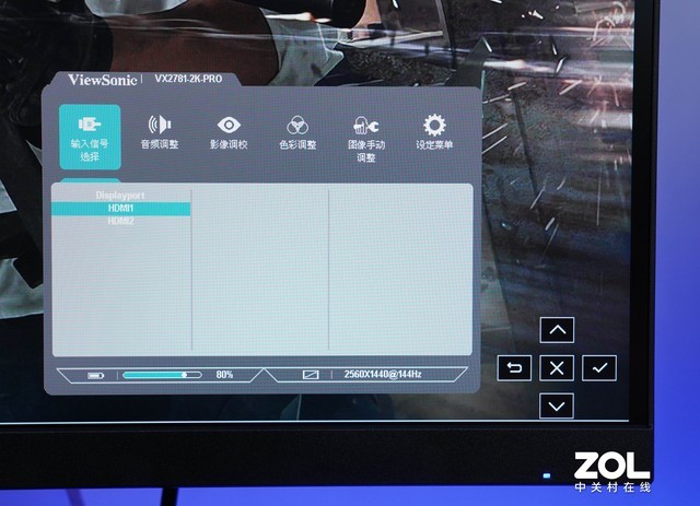优派 VX2781-2K-PRO显示OSD菜单采用五维摇杆进行调整。与背部按键设计相比,摇杆的柔韧性更好,调节体验更高效。