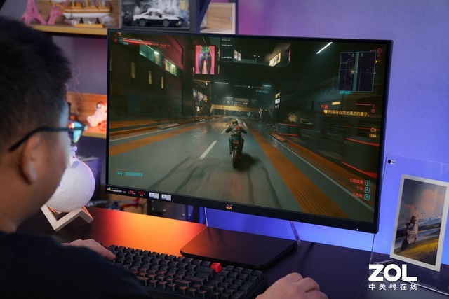 与《生死狙击手2》等纯粹的射击游戏不同,《赛博朋克2077》是一款角色扮演RPG游戏,融合了开放世界、冒险、射击等多种元素,因此更注重显示器的综合性能。优派 VX2781-2K-PRO有100%SRGB和93%DCI-P3色域覆盖,面对复杂多变的游戏场景,可以实现非常精准的色彩还原。同时,在打开游戏和显示器的HDR选项后,我们也可以获得更贴近现实的画质表现。