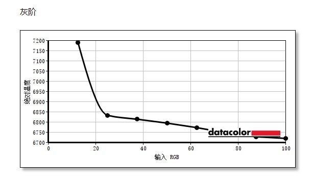 在灰阶方面,优派VX281-2K-PRO显示器在45%-70%的亮度下色温性能相对稳定,整体色温保持在6750-6800K之间。