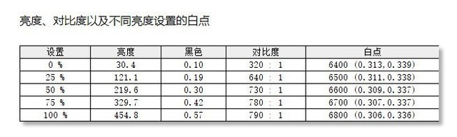通过实测可以看出,优派 VX2781-2K-PRO的最高亮度为454.8尼特,完全符合HDR400的标准。在色温一致性方面,白点色温保持在6400-6800K之间,亮度为0-100%。