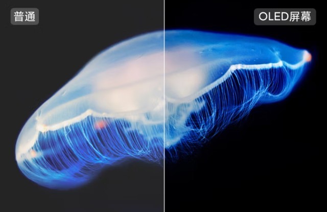传统的LCD屏幕可以依靠背光层的存在来发光。显示黑色图片时,需要通过LCD分子偏转来屏蔽背光。这样,不可避免地会出现光线泄漏问题,因此显示的图片实际上接近黑色灰色。
