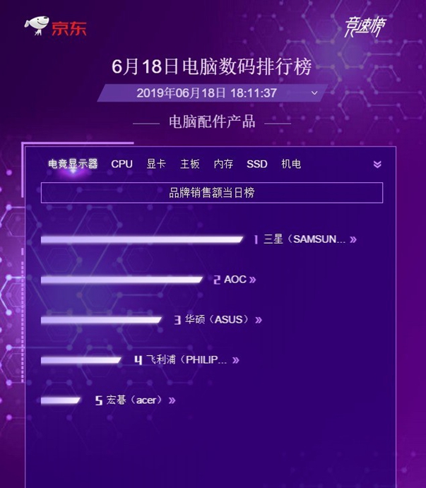 618已经过去大半天了,不知有多少小伙伴开始剁手了呢?你们知道电竞显示器卖的最多的哪个牌子吗?让我们一起来看看实时风云榜,答案即将揭晓!(标题已经出卖了我自己)