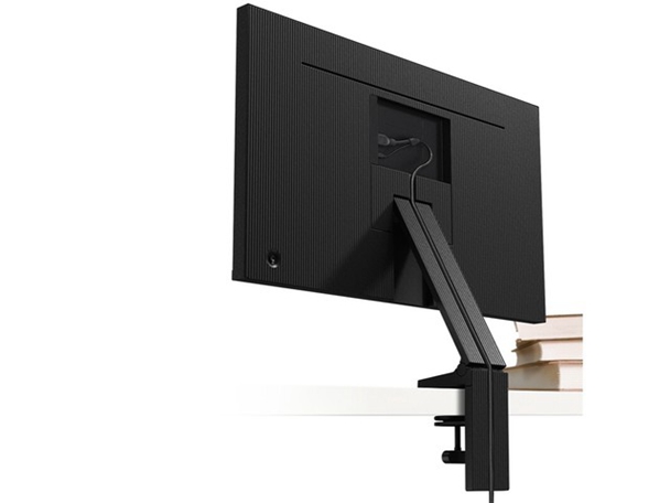 其实全新Space monitor系列显示器的精髓之一便在于它的固定方式,这个系列显示器采用了三星称为0°空气感支架的全新支架,创新性的设计让这款显示器可以完全贴住墙面使用,同时采用了最大支持90mm厚度的钳夹式底座。说到这肯定有朋友担心这款底座是否牢靠,那么我们很负责的告诉大家,这款底座采用的是双铰链设计,非常坚固!同时让这款显示器的可调节范围非常大,对于使用者的体验非常好,堪称颈椎的守护者。
