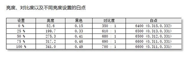 灰阶方面,显示器在40%-100%的亮度下比较稳定,基本是在6300K-6500K之间。