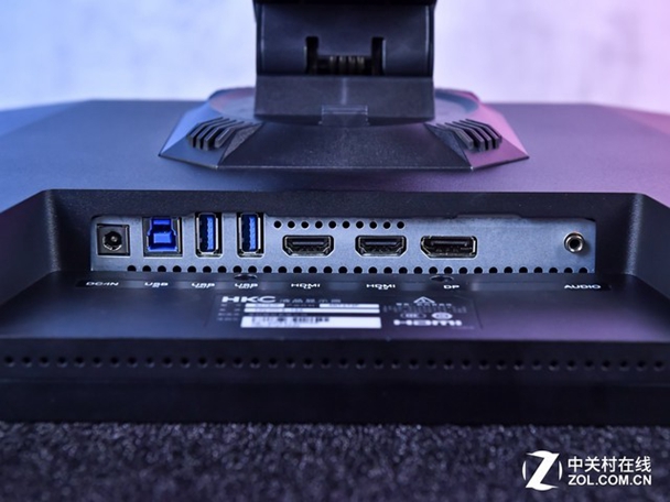 接口上,显示器配备了一个HDMI 1.4、一个HDMI 2.0、一个DP、两个USB 3.0、一个 USB Type B上行接口以及一个音频接口,接口的种类可以说是非常丰富了。