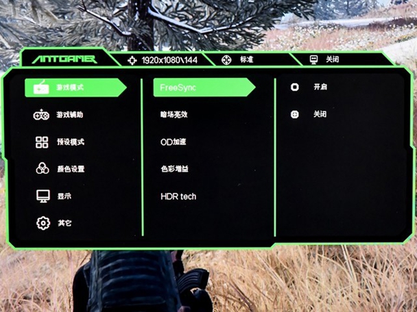 可以看到,除了普通显示器都具备的色彩调节以外,OSD菜单上还是和之前ANTGAMER蚂蚁电竞旗下的电竞显示器一样,拥有很多实用的游戏功能,而Free Sync功能可以有效的防止画面产生撕裂感。下面就让我们来一起体验看看吧。