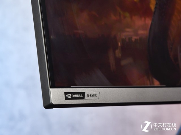 底部边框正中是LOGO标识牌,左下角的标识显示这款显示器支持G-SYNC技术,该技术可以使画面更加顺滑,有效减少画面撕裂。