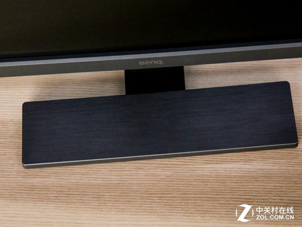 背面采用弧度设计,也是黑色磨砂得质感,配合镜面的背部支架和产品LOGO,在沉稳中又透露着潮流的现代感,这样的设计,也算的上是锦上添花了。如果你仔细的观察底座,你可能还会发现底座和正面底框的灰色不同,采用了一种金属拉丝的质感,可以说是在细节上做足了功夫。