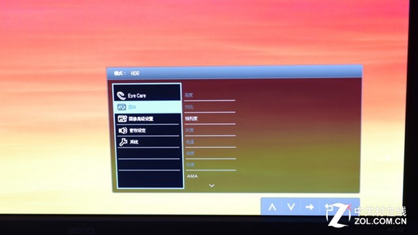图片设置中的选项和传统明基显示器差不多,都维持了选项众多、可自定义度高的特点。可调节亮度、对比度、锐利度、色温等多项参数。不过在HDR开启的状态下许多参数是没办法调整的,因为开启HDR后,显示图谱会按照一个预设好的曲线来呈现。