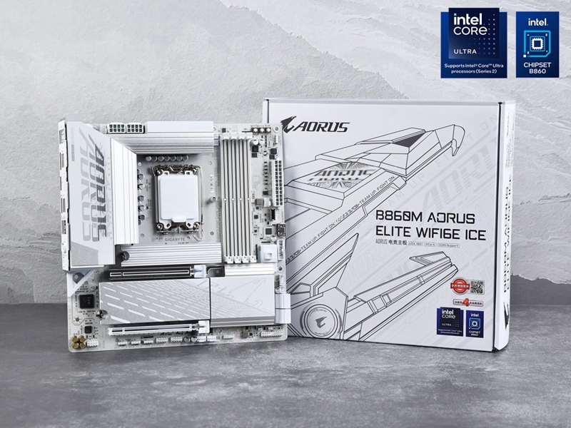 针对喜欢打造白色海景房主机的玩家,我们这里首先推荐一款技嘉冰雕B860M AORUS ELITE WIFI6E ICE DDR5主板。这款主板基于英特尔新一代酷睿Ultra平台设计,用料十足,搭载12+1+2相供电模组,比较建议搭配酷睿Ultra7-265K这种中高端酷睿Ultra处理器,虽然B860芯片组锁倍频超频,但本身这代也没什么太多CPU超频空间,因此搭配冰雕B860时性价比会很高。