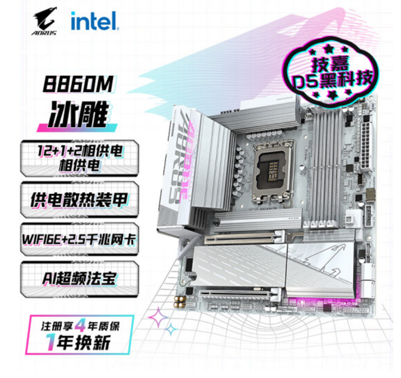 技嘉冰雕B860M AORUS ELITE WIFI6E ICE DDR5主板:https://item.jd.com/100168405440.html