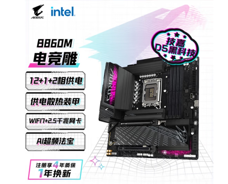技嘉电竞雕B860M AORUS PRO WIFI7 DDR5主板: