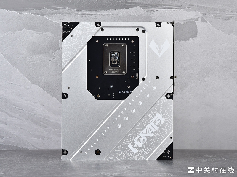 铭瑄瑄 Z890 Arctic主板背面装备了全覆盖金属装甲,做了灰白风金属涂装设计,既美观又实用,能有效保护PCB。