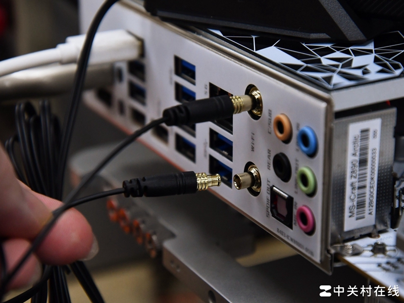 值得一提的是铭瑄主板的Wi-Fi 7无线网卡的信号增强天线不是传统旋钮式安装,而是采用了支持快插的插拔式设计。
