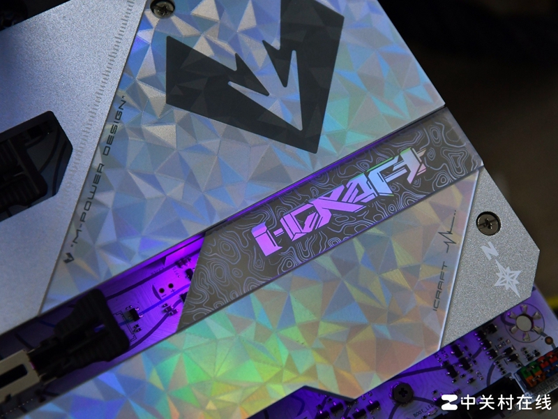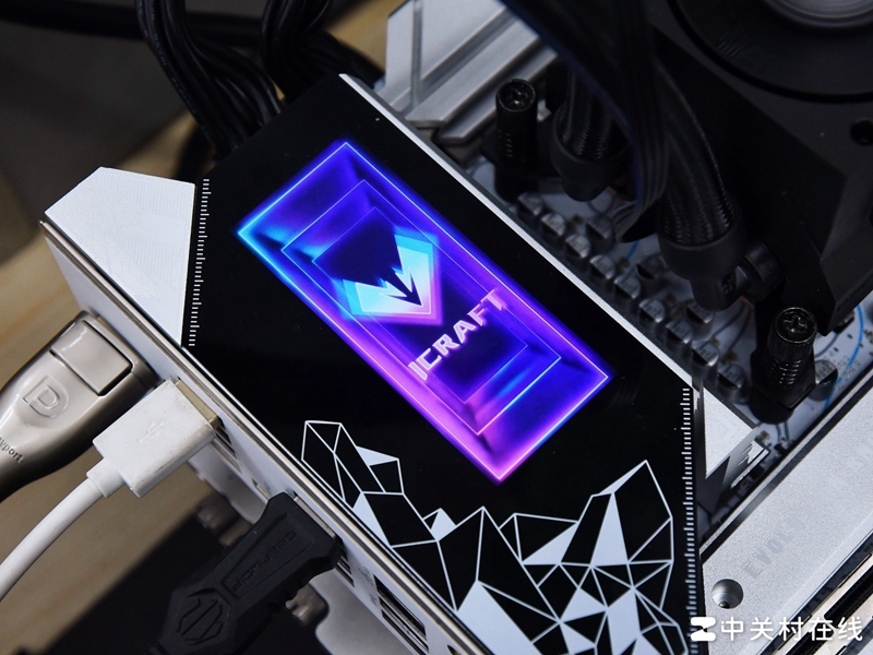 VRM散热装甲不仅拥有一块3.4英寸锐影屏,本身是两块超大金属散热片组成,由一根导热管相连,导热效率很高,还配备导热垫快速传导MOS热量。