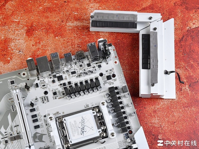 作为冰雕系列中的一员,技嘉 B650E 冰雕背插版主板采用了纯白配色,目前这也是首款纯白的背插主板,对于想要打造背插平台雪景房的用户,几乎是唯一选择。背插主板特色是除了PCIe插槽核内存插槽外他插槽都放到了背面,所以技嘉 B650E 冰雕背插版主板正面突出一个简约整洁,加上纯白风格让其颜值又上了一个台阶。