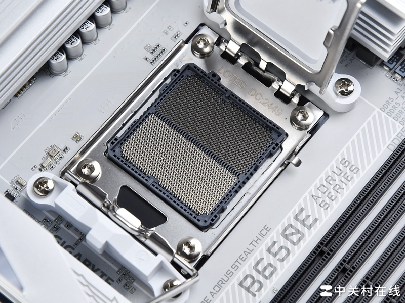 技嘉 B650E 冰雕背插版CPU插槽采用AM5接口,目前锐龙7000核锐龙9000都可以兼容AM5,散热器与AM4通用。
