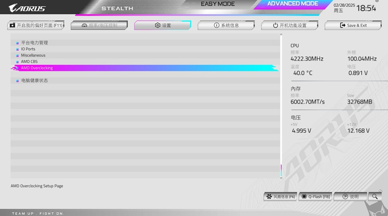 左边就是重要的超频界面,首先可以看到基于AMD处理器独有的超频设置,比如PBO一键超频、105W功耗解锁以及X3D游戏加速等功能。不过对于这两代AMD锐龙7000和锐龙9000来说,超频空间很小,好处是不用向隔壁那么折腾,适合平民玩家一键上手。
